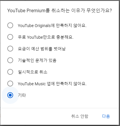 본인의 이유를 눌러주고 다음을 눌러줍니다.