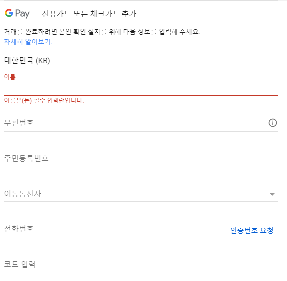 카드를 추가하고 구매를 눌러주면 끝납니다.