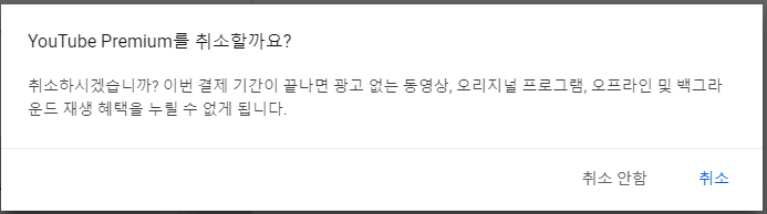정말 취소할 건지 또 물어봅니다. 취소를 눌러줍니다.