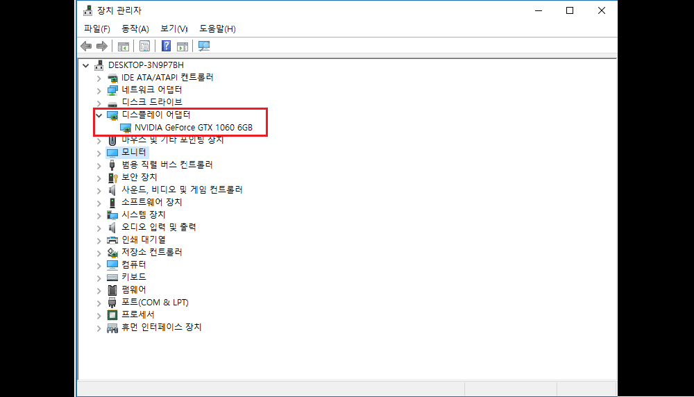 △ 장치 관리자에서 컴퓨터 사양의 모든 사양을 볼수 있습니다. 모든 사양을 볼수 있지만 자주 찾는 사양은 그래픽카드입니다. 디스플레이 어댑터에서 그래픽카드의 정보를 알 수있습니다.
