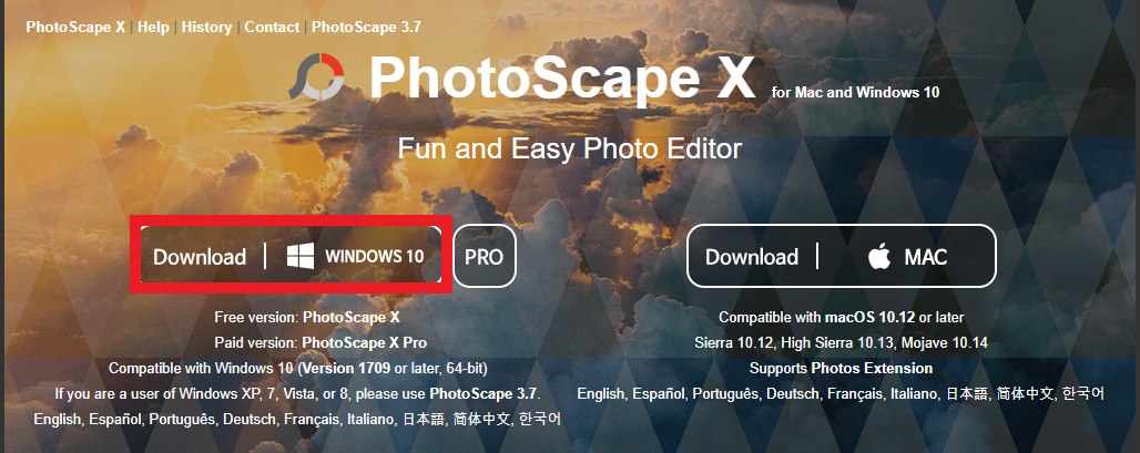 △ 위의 링크로 이동해서 윈도우10과 맥을 지원하는 포토스케이프 X 버전을 다운로드를 클릭해줍니다.