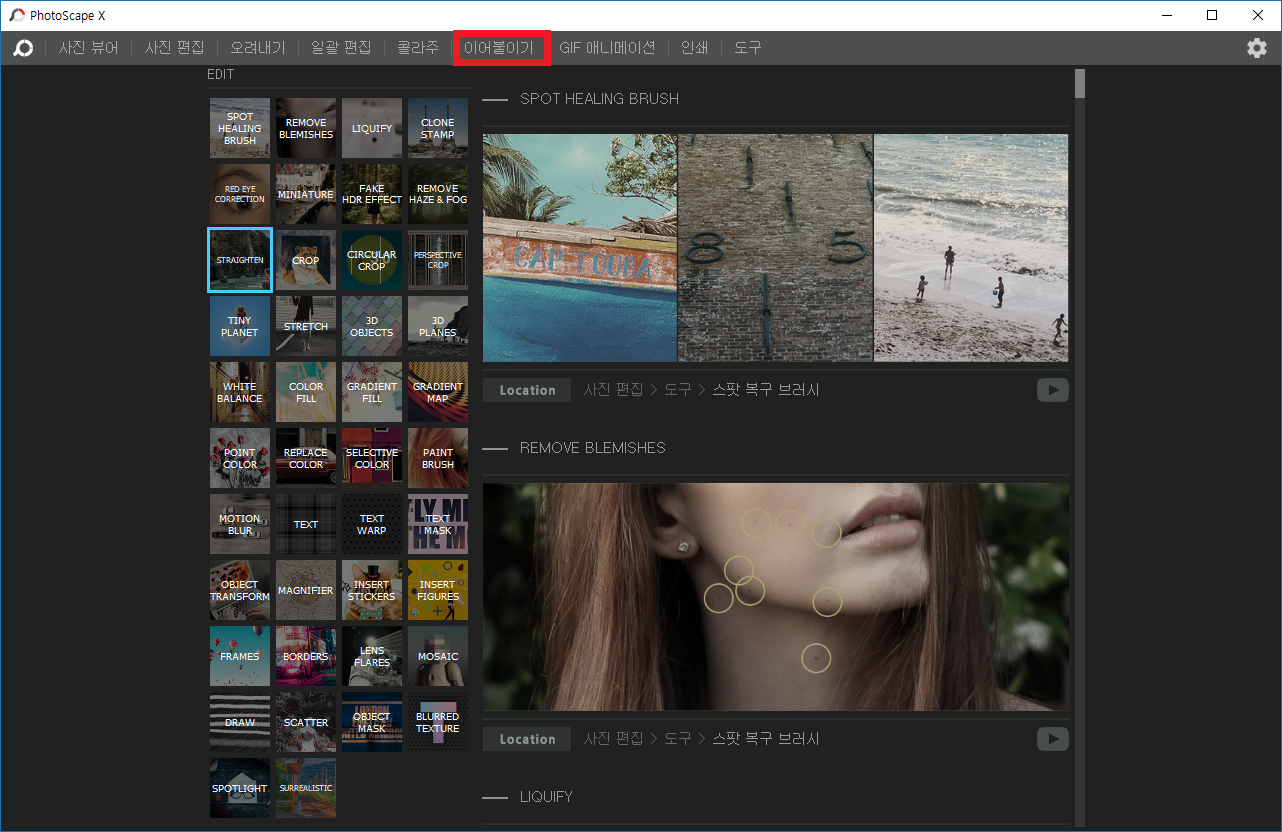이밖에도 기능들을 많지만 어떤 프로그램인지 알기에 충분하기 때문에 이 정도로 추려봤습니다. 저는 포토스케이프 기능 중에 이어 붙이기 기능을 가장 많이 씁니다.
